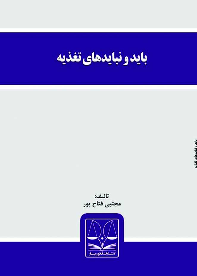 باید و نباید های تغذیه......این کتاب از جمله کتب پژوهشی و تحقیقاتی از انتشارات قانون یار به مدیر مسئولی دکتر بهنام اسدی به شماره مجوز 12161(استان تهران) می باشد. مطالعه این کتاب به تمامی اساتید، حقوقدانان، قضات، وکلا و دانشجویان رشته حقوق پیشنهاد می گردد.همچنین استفاده از این کتاب برای انجام امور تحقیقاتی همچون نگارش مقاله، پایان نامه و رساله دکتری مفید و کارساز می باشد. انتشارات قانون یار از شما عزیزان جهت چاپ آثار علمی و انتشار کتب خویش در این انتشارات دعوت به عمل می آورد. تبدیل پایان نامه به کتاب با شرایط خاص و ویژه انجام می گردد. با قانون یار رتبه تک رقمی بیار