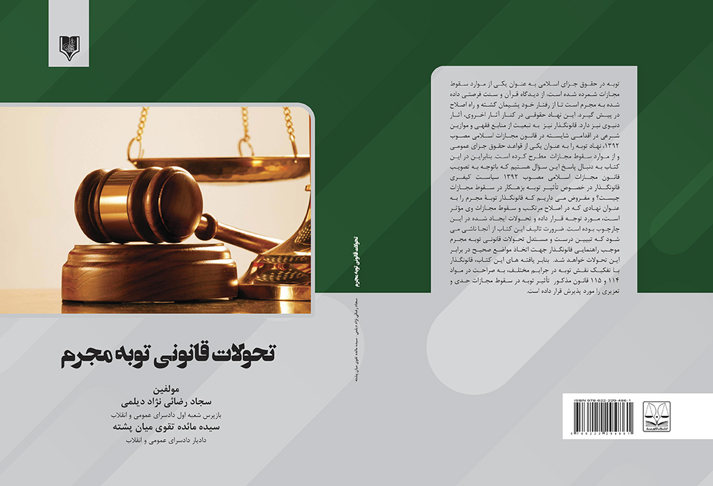 کتاب تحولات قانونی توبه مجرم از انتشارات قانون یار منتشر شد!