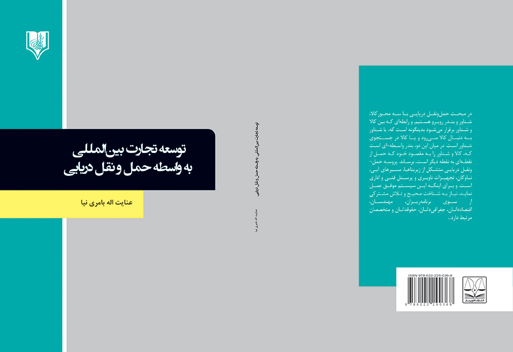 توسعه تجارت بینالمللی به واسطه حمل و نقل دریایی.....این کتاب از جمله کتب پژوهشی و تحقیقاتی از انتشارات قانون یار به مدیر مسئولی دکتر بهنام اسدی به شماره مجوز 12161(استان تهران) می باشد. مطالعه این کتاب به تمامی اساتید، حقوقدانان، قضات، وکلا و دانشجویان رشته حقوق پیشنهاد می گردد.همچنین استفاده از این کتاب برای انجام امور تحقیقاتی همچون نگارش مقاله، پایان نامه و رساله دکتری مفید و کارساز می باشد. انتشارات قانون یار از شما عزیزان جهت چاپ آثار علمی و انتشار کتب خویش در این انتشارات دعوت به عمل می آورد. تبدیل پایان نامه به کتاب با شرایط خاص و ویژه انجام می گردد. با قانون یار رتبه تک رقمی بیار