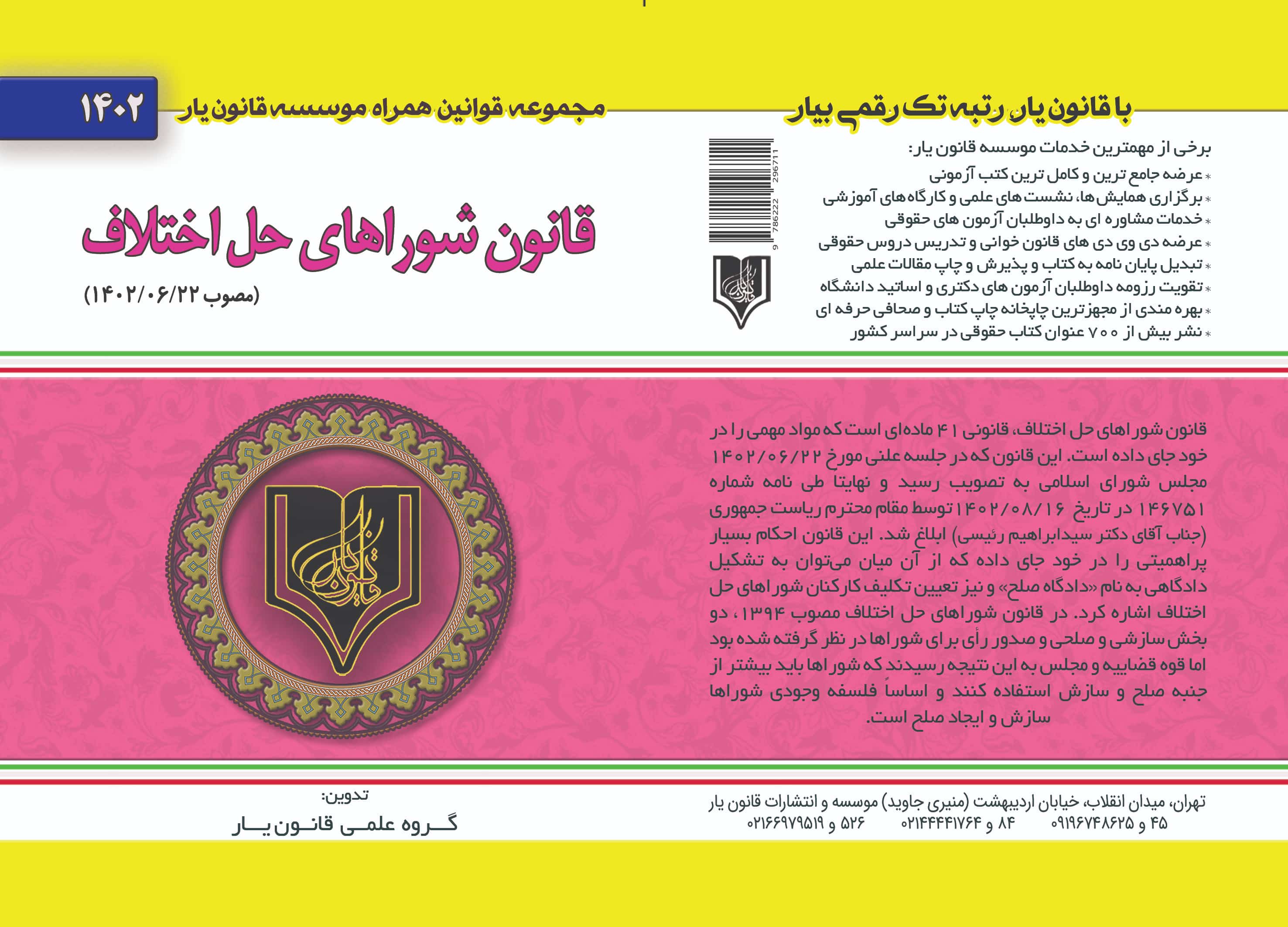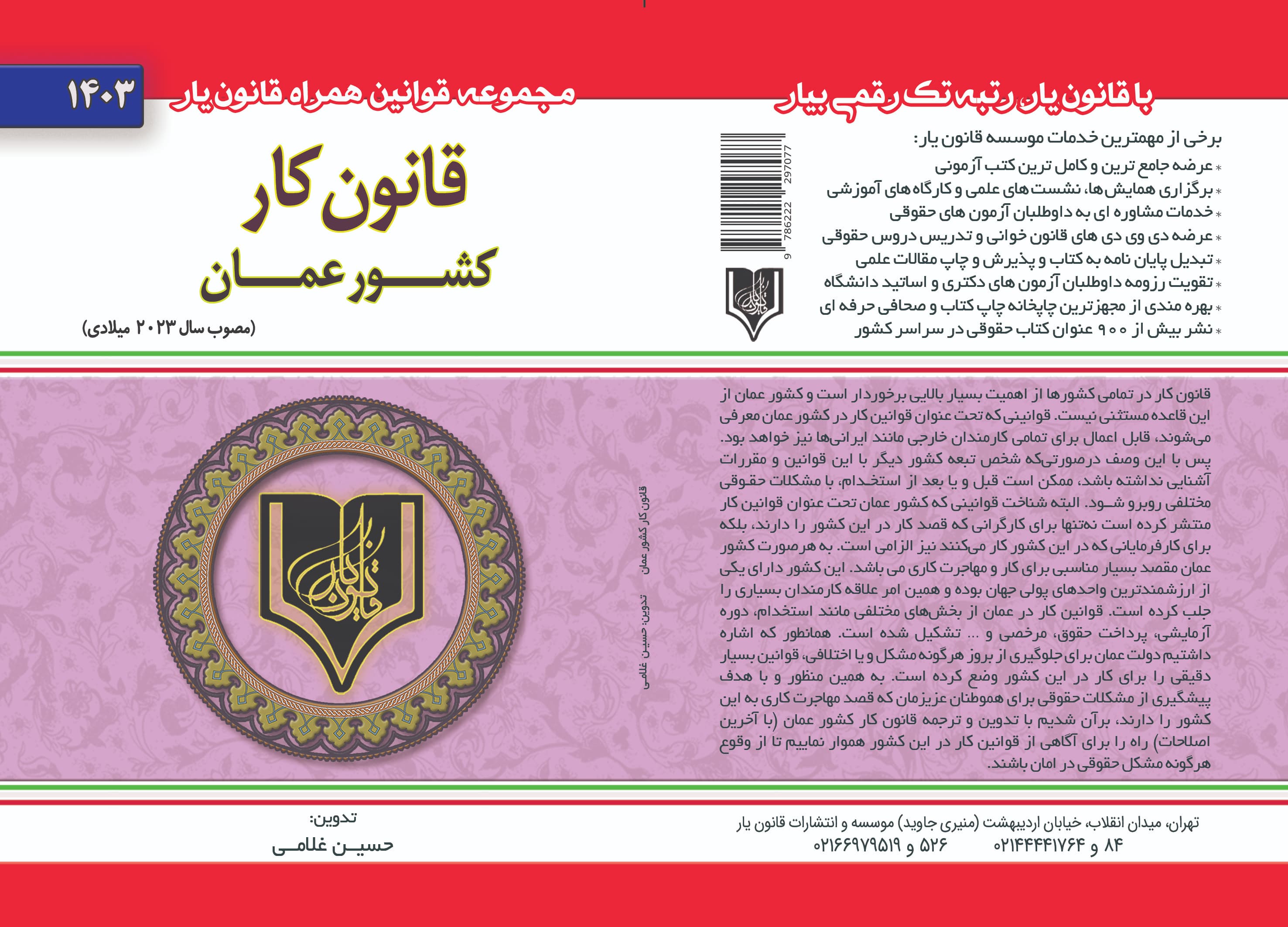 کتاب حاضر از جمله کتب پژوهشی موسسه و انتشارات قانون یار میباشد. از تمامی پژوهشگران و مولفین خواهشمند است در فراخوان چاپ آثار علمی که از موسسه قانون یار اعلام شده شرکت نمایید و به خانواده بزرگ قانون یار بپیوندید.